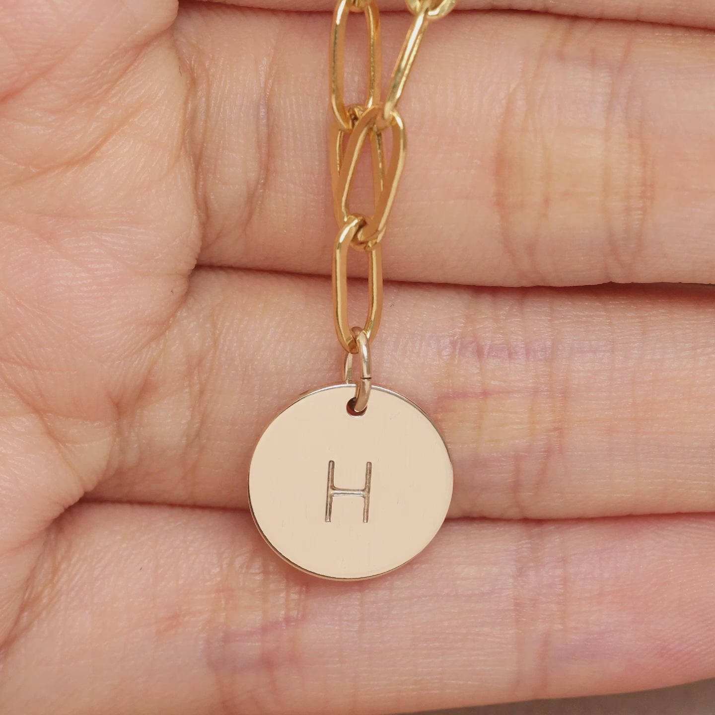 A timeless bracelet with a personal touch — featuring a bold Isabel chain and your chosen initial, hand-stamped just for you or someone you love.