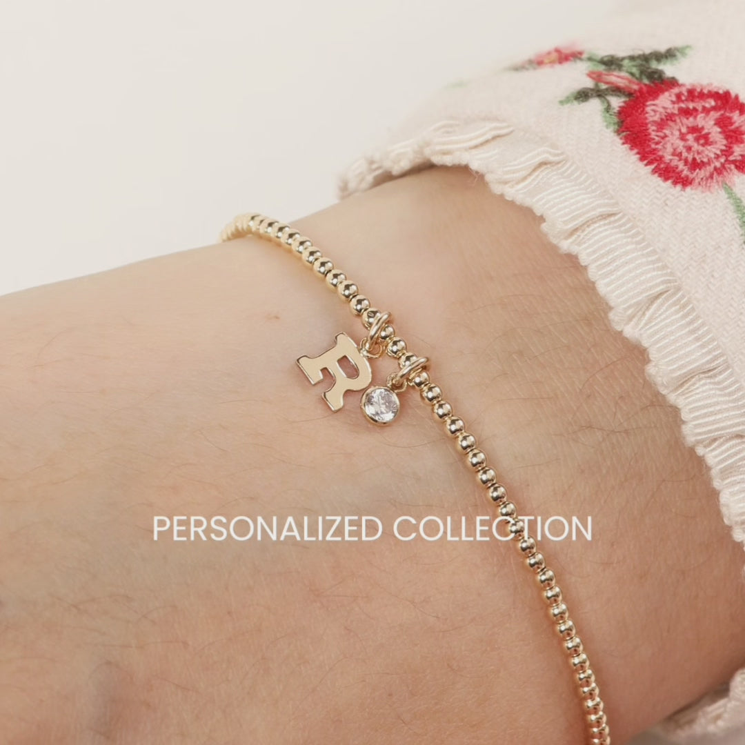 Spell it your way — personalized with letter charms that shine softly on gold beads.